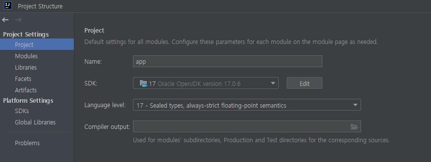 이는 Project 및 Gradle에 Java 17 이하로 설정되어있기 때문에 이를 수정하면 된다.