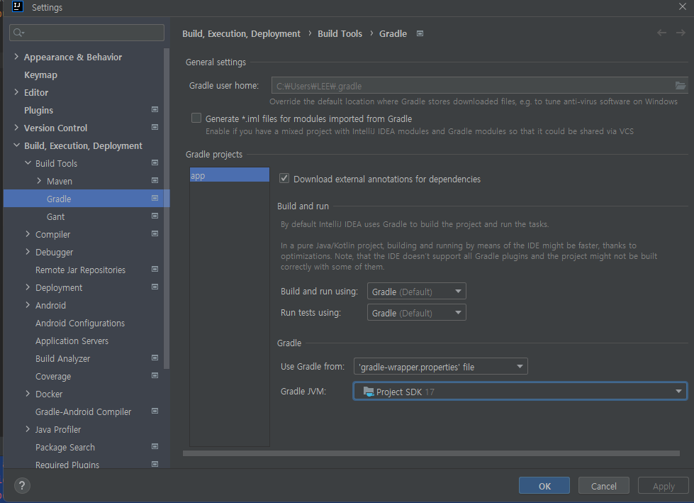 위와 마찬가지로, Gradle JVM 또한 Java 17 이상이어야한다.