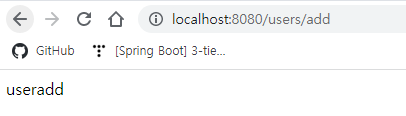 useradd 라는 문자열을 반환하는 /users/add 테스트용 메서드를 생성해줍니다.