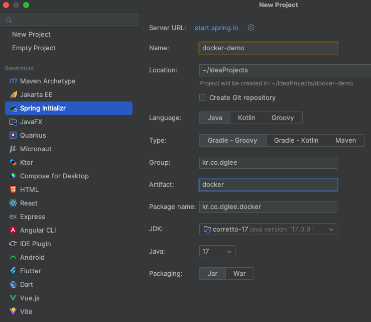 애플리케이션이 정상적으로 실행된다면, 이제 Dockerfile을 생성합니다.