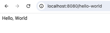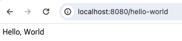 정상적으로 Container의 STATUS가 Up X seconds로 표시된다면 http://localhost:8080/hello-world에 접근이 잘 되는 것을 볼 수 있습니다.