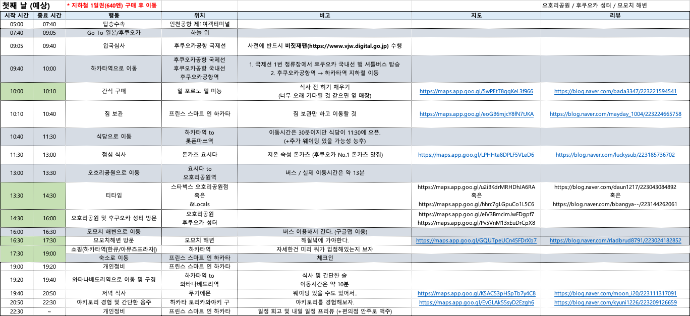 나의 첫째 날 일정표