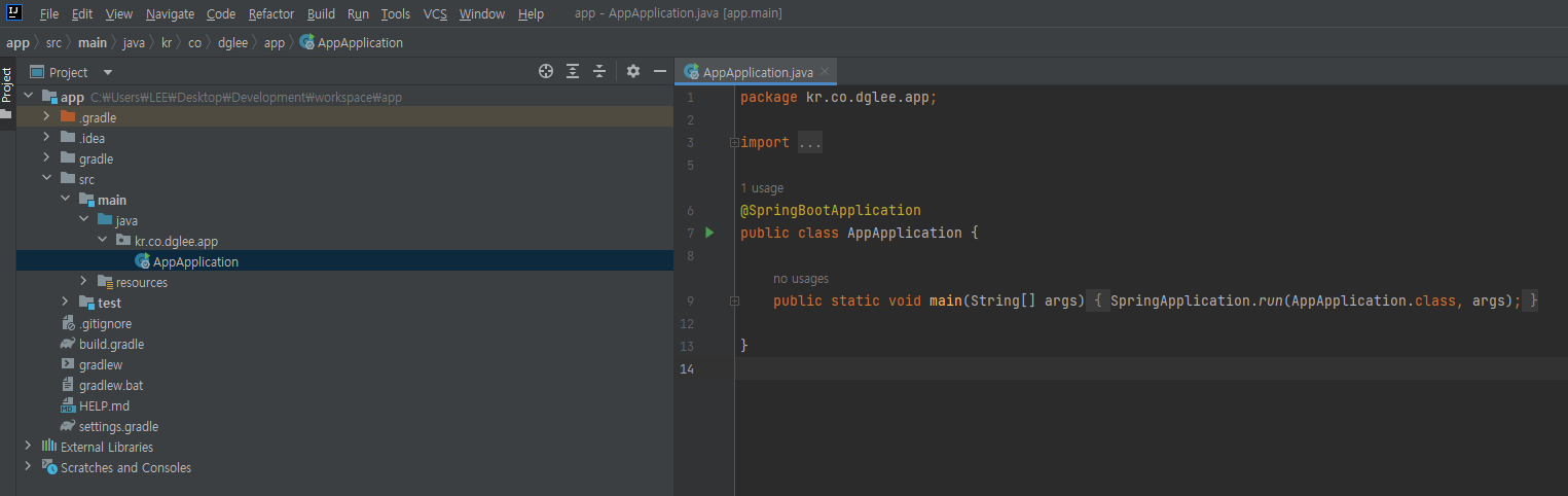 압축이 해제된 프로젝트를 사용하고 있는 IDE(이클립스, STS, 인텔리제이, VSCode 등)에 Import하면 아래와 같이 정상적으로 Import 된 것을 확인할 수 있습니다.