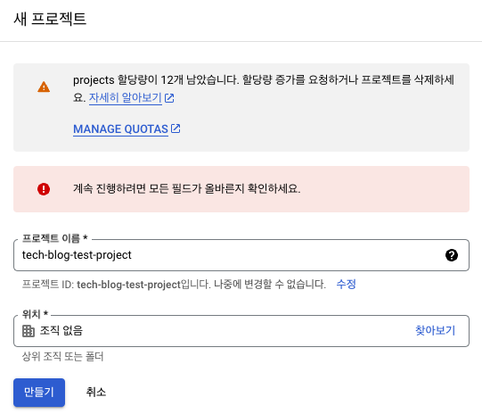 아래 링크에 접근하여 [프로젝트 선택] > [새 프로젝트]를 선택하여 프로젝트를 생성하자.