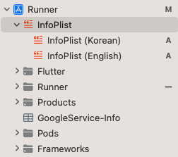 그러면 아래 2번째 사진과 같이 InfoPlist Korean / English 등의 파일이 생기는 것을 볼 수 있습니다.